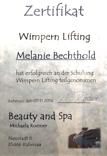 Zur Abrundung und natürlich auch zum Qualifikationsnachweis absolvierte ich im Jahr 2014 erfolgreich die Ausbildung zur Kosmetikerin. 2015 konnte ich den Titel Fusspflegerin erfolgreich erwerben.